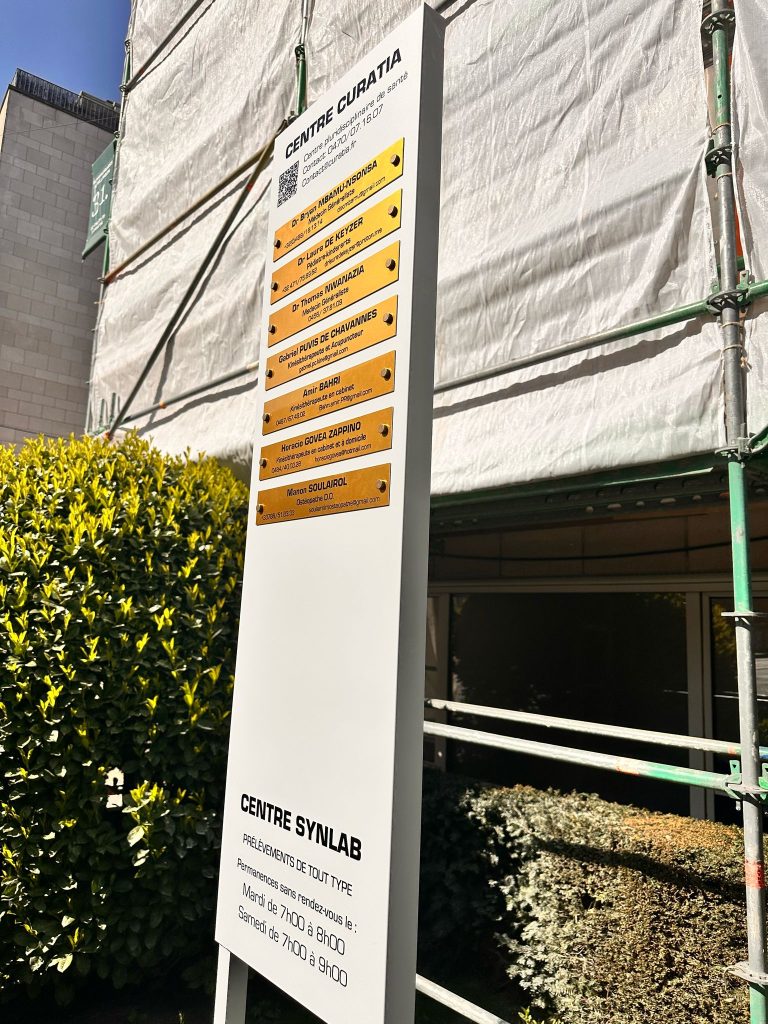 Le plexiglas a l’avantage d’être un matériau résistant aux intempéries, avec un bon rapport qualité-prix et offrant un rendu à la fois esthétique et moderne. La plaque professionnelle plexiglas est le choix le plus courant fait par notre clientèle.