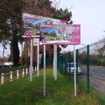 Le panneau est fixé sur un poteau central ou sur deux poteaux en acier galvanisé, fortement ancrés dans le sol afin de résister au vent. Un scellement béton est nécessaire pour garantir une fixation solide et durable du panneau. Nous vous préconisons de faire une étude de faisabilité pour déterminer l’emplacement idéal au sol. Pour une finition parfaite, un bouchon obturateur est installé en haut de chaque poteau afin d’éviter les écoulements d’eau à l’intérieur.